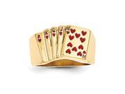 14k Yellow Gold Enameled Royal Flush in Hearts Mens Ring. Metal Wt- 5.3g
