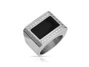 Bling Jewelry Black Onyx Color Greek Key Stainless Steel CZ Mens Ring