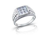 Bling Jewelry Sterling Silver Princess Cut Stone CZ Watch Band Style Mens Ring
