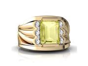 Lemon Quartz Men's Men's Ring 14K Yellow Gold Genuine Emerald-cut
