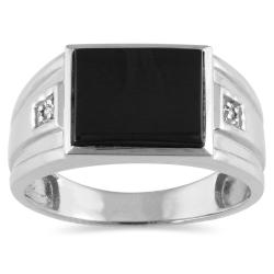 10k White Gold Onyx and Diamond Accent Men's Ring