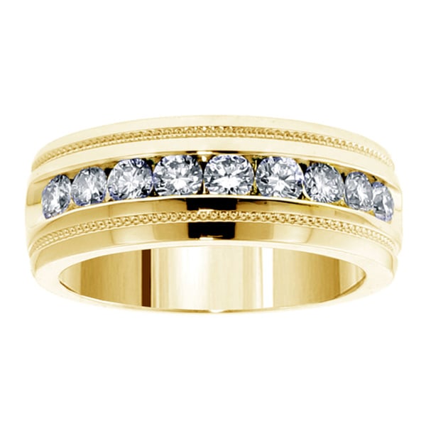 The yesterday. I search for information on the 14k Yellow Gold 1 CT Brilliant Cut Diamond Men's Ring with a details are briefly as follows: Unmatched sophistication and elegance coupled with modern design make this ring a true treasure for life. Dazzling 1 Ct band sparkles with exceptional brilliance of F/G-color and SI clarity carefully selected channel set brilliant cut diamonds. White DiamondsDiamonds: NineDiamond cut: RoundDiamond weight: 1 caratColor: F-GClarity: SI1-SI2Setting: ChannelMetal information and dimensionsMetal: 14k yellow goldFinish: High polishStyle: Diamond bandRing setting dimensions: 8 mm wideBand dimensions: 7 mm wide Diamond total weight: 1* carat TW All weights and measurements are ... Read more Compare prices from various online stores: Here